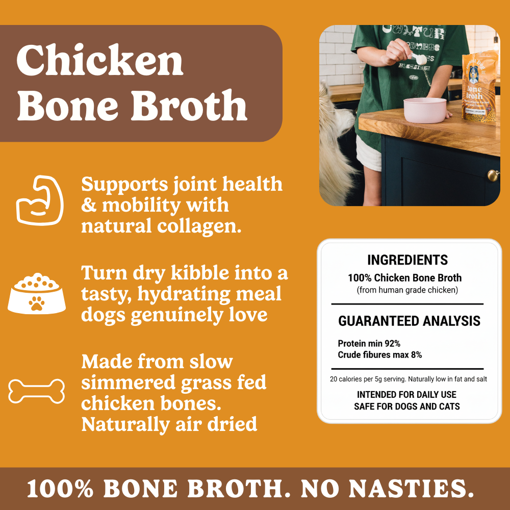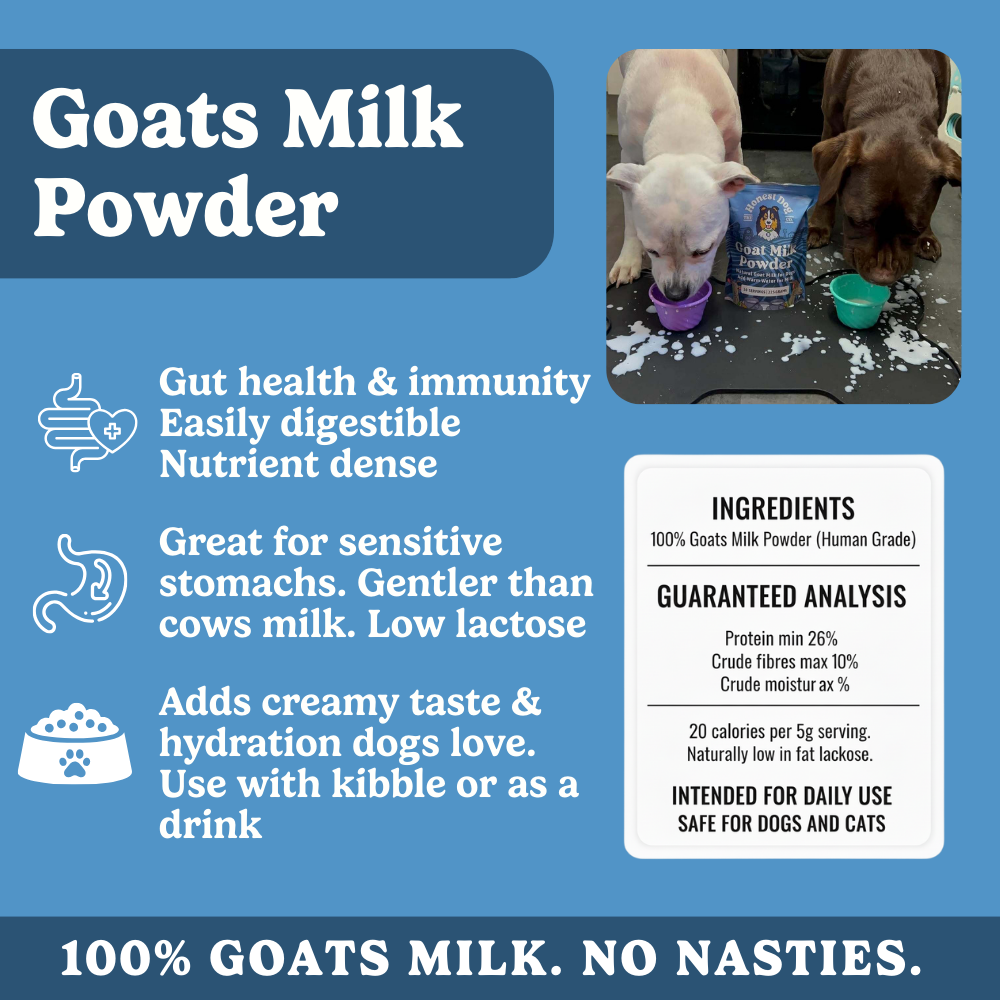With collagen and glucosamine from bone broth, plus essential fats and calcium from goat’s milk, this bundle supports strong joints, shiny coats, and healthy skin. Perfect for active pups, seniors, or breeds prone to stiffness and dryness.
